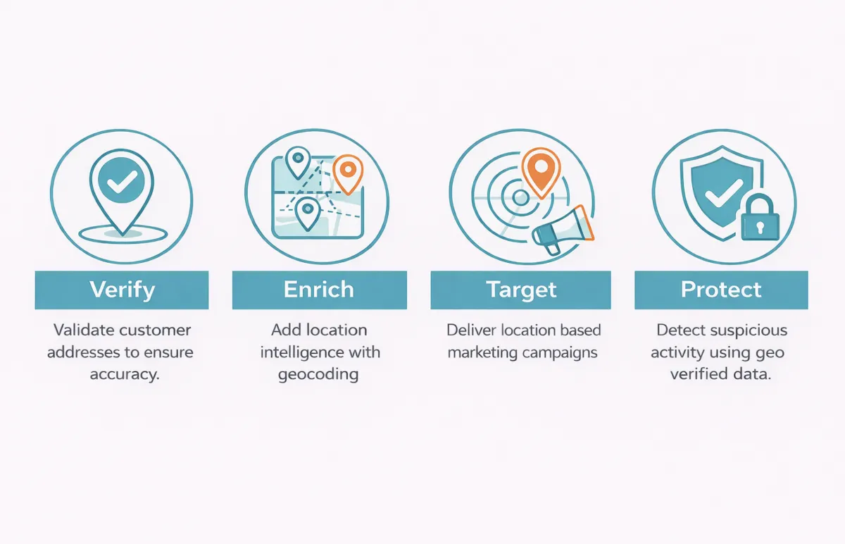 Geocoding technology increases this value by helping brands target customers based on location. Etailers can ensure their ads and offers align with regional demand, improving campaign results based on smarter targeting that can even direct shoppers to their nearest store or service center. When businesses use verified address data to improve engagement, they see better conversion rates and stronger revenue growth. Frontline fraud prevention also benefits from geo-verified data, which creates an extra layer of security by confirming that transactions and account activities align with a customer's known or expected geographic behavior.